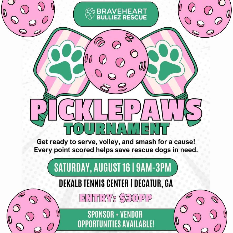 ⏺️••"Braveheart Picklepaws Tournament" Pickleball tournament in Decatur, GA Organized by: Braveheart Bulliez Rescue